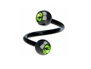 Black Titanium Coated Spiral with L/green Gems
